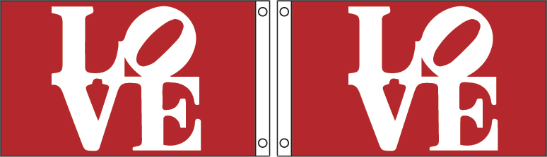 Made with one piece of material so the flag flies more freely. Design shown correctly on front, in reverse on back (Recommended)